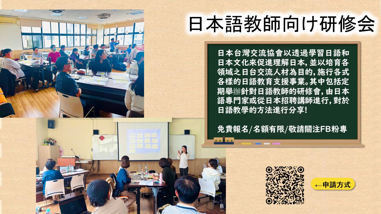 1月17日(土)に台中市(台中科技大学)において、当所の佐藤直樹日本語専門家による日本語教師向け研修会「多技能統合型授業と課題の共有in台中」を実施しました。台中市内外から、大学や中学高校、民間日本語学校、そして日本語教師志望者を含む26名が参加してくれました。 参加者はジグソーリーディングを実際に体験し、活動で使われる技能、そして必要な「力」について意見を出し合いみんなで共有しました。参加した先生からは「非常に楽しい研修会でした。」「このまま同じ事を授業でやってみたいです。」「現代の教育現場で求められている視点や考え方が整理されており、非常に共感できる内容でした。」というコメントをいただきました。 今後もさまざまな研修会を行いますので是非協会HPをご覧ください。3月の第6回日本語教育研修会へのご参加お待ちしています。