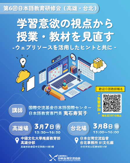 2025年度第6回日本語教育研修会(高雄3/7、台北3/8)参加申込受付開始