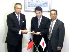 2.これに対し、畠中理事長より馮寄台代表に対し、台湾側のこのような迅速な対応に対し感謝の意を表するとともに、本件は台湾側の日台関係を重視する姿勢を示すものとして高く評価する旨述べました。また、同席した岡村宮崎県東京事務所長より、東国原宮崎県知事からの台湾側に対する感謝のメッセージが披露されました。