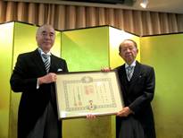 12月3日、当所文化ホールにて、平成25年秋の外国人叙勲により、旭日中綬章を受章された許文龍氏に対し、当所樽井澄夫代表より、勲記・勲章の伝達を行いました。 許文龍氏は、長年にわたり、日本及び台湾間の経済関係の強化及び交流促進、そして日本企業の国際化の推進に多大なる御貢献をされてきたことが称えられ、今回の受章となりました。