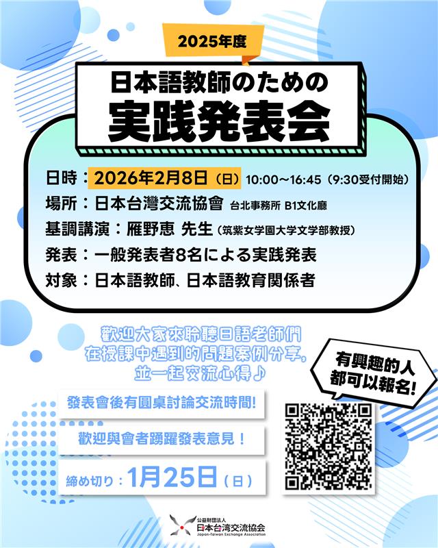【開始報名】2025年度日語教師實踐發表會(台北2月8日實施)