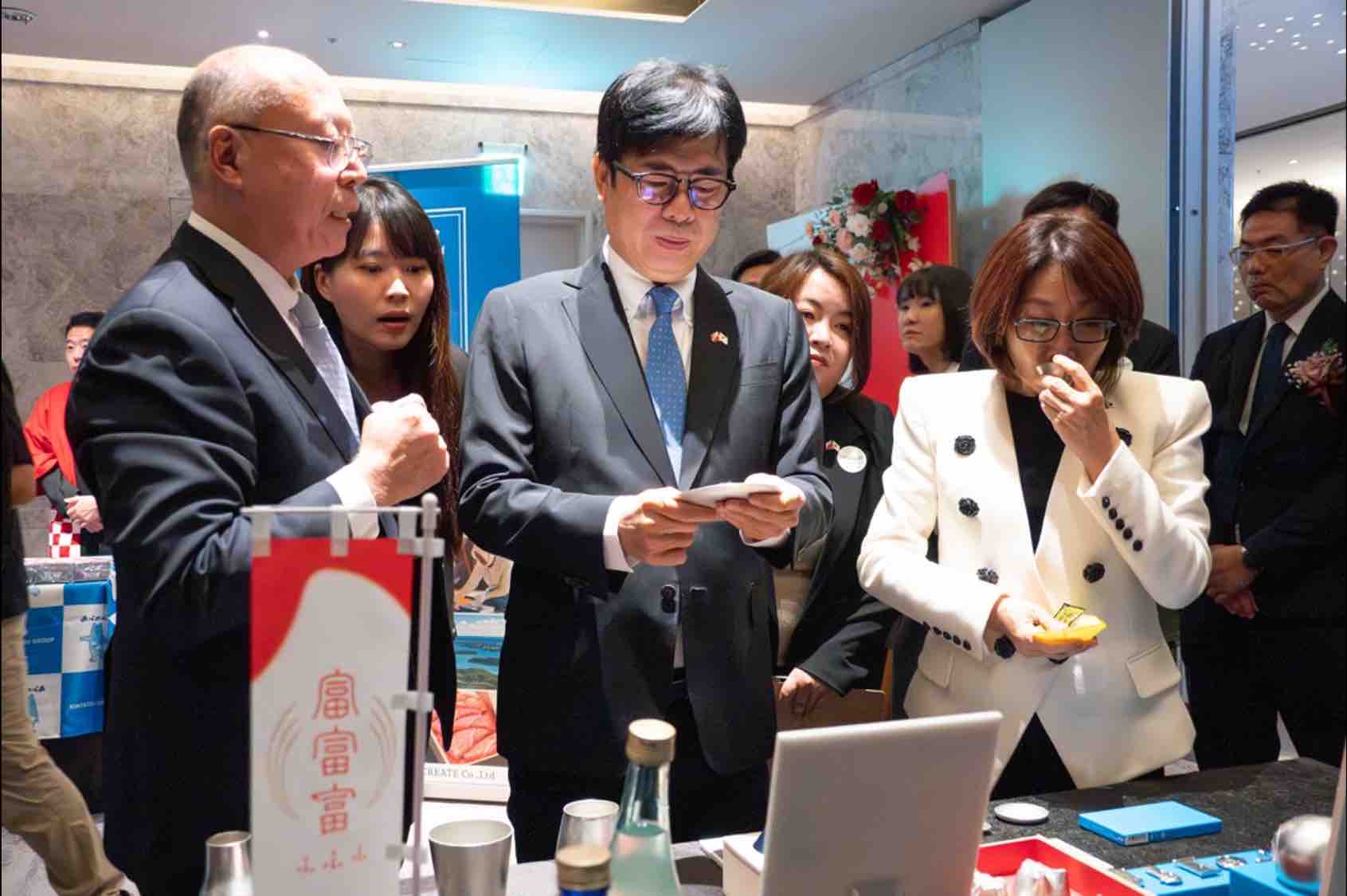 會場設有日系企業及日本地方政府的展示攤位,向與會來賓介紹日本酒等各地名產以及各家公司的特色商品。典禮結束後,奧所長也帶領陳其邁市長、管碧玲主委、康裕成議長等貴賓參觀各攤位,讓貴賓們充分體驗日本各地的特色美食與各公司的產品。