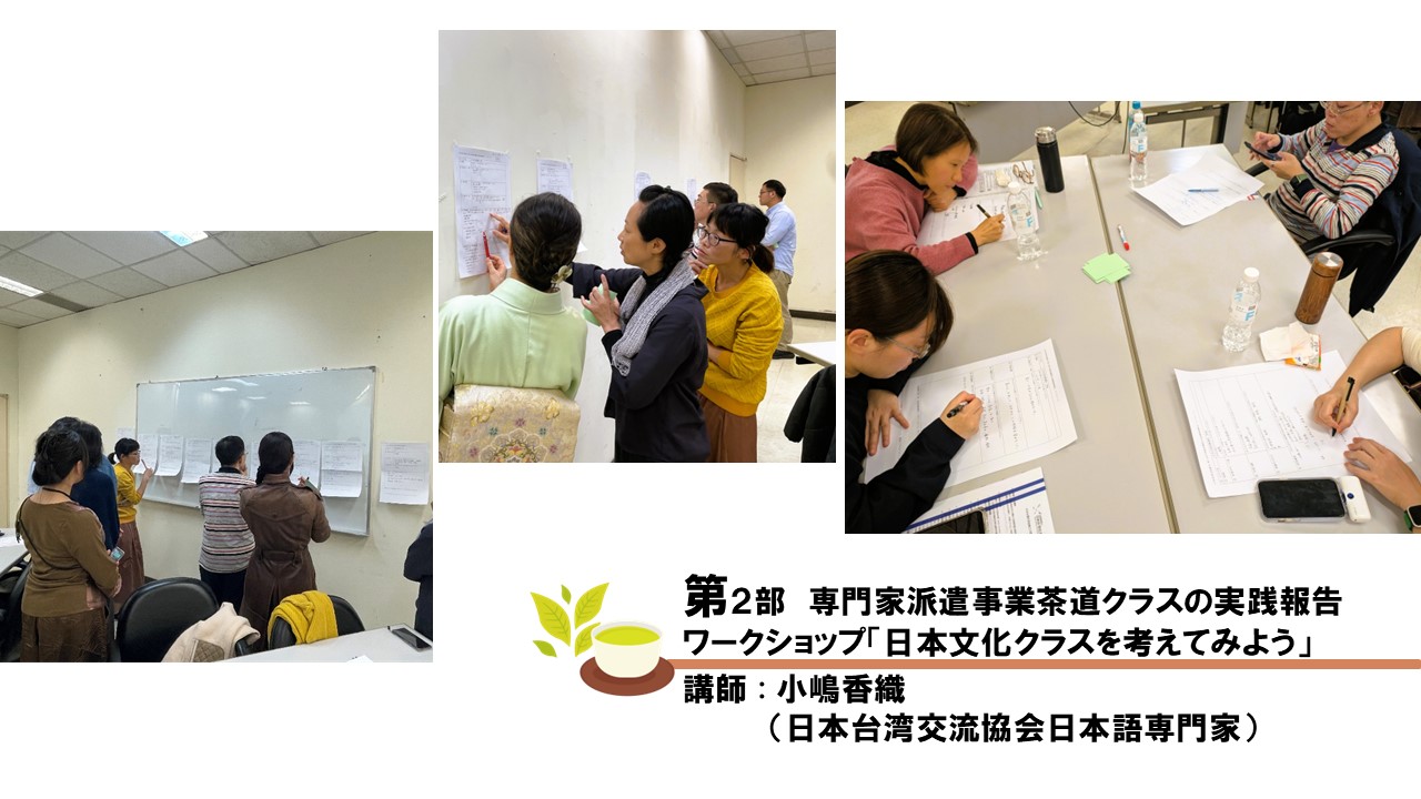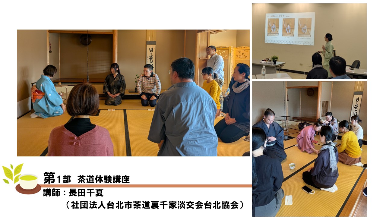 3月21日(六)在社團法人台北市茶道裏千家淡交會台北協會由本協會舉行以日語教師為對象,主題為「在教學日本文化上的用心 ―以茶道為例―」的研習會。 本研習會對象是任職於台灣教育機構,教學內容包含第二外語的日語課、日本文化及日本現況的教師。第1階段是由茶道裏千家台北協會的長田千夏講師進行茶道講座,第2階段是由本協會小嶋香織日語專家進行工作坊。對參與者而言,透過茶道體驗領略日本文化精隨,是運用五感體會的珍貴學習經驗。在會後問卷中參與者表示「我仔細品味茶道的每一個流程,是非常具體且深刻的體驗。」的迴響以外,也有表示「希望在今後的教學中加入茶道與日本的款待文化」展現了實踐意願的意見。 本協會日後將持續舉辦益於增進教師自信的研習活動,致力於提升台灣教育現場在日語及日本文化教育的品質並且推動國際教育,進一步擴展教師間的交流網絡。