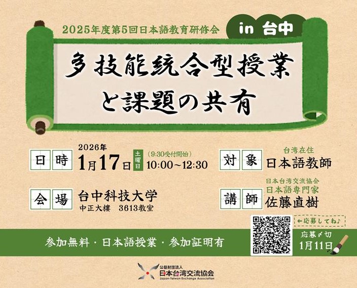 2025年度第5次日語教育研習會(台中1/17)開始報名